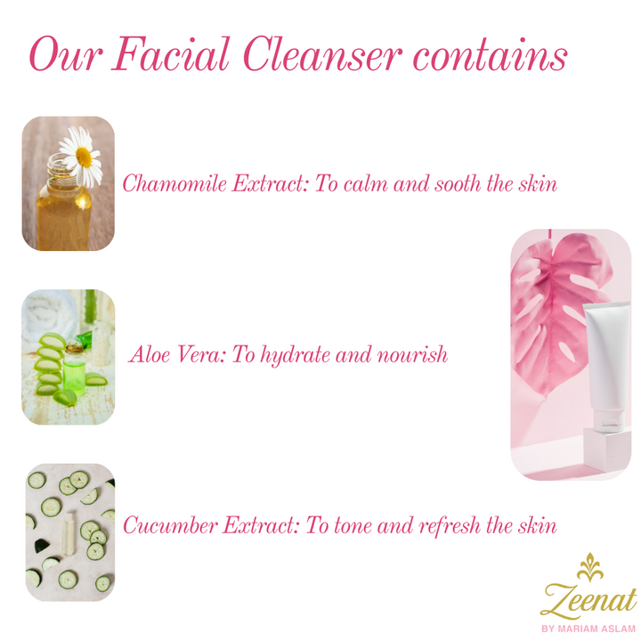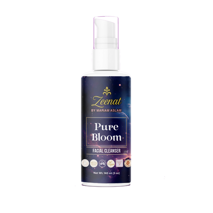 Pure Bloom is a soft-foaming facial cleanser designed to refresh your skin without disrupting its natural balance. Its gentle formula creates a creamy lather that lifts away dirt, oil, and makeup while leaving the skin hydrated and calm. Ideal for everyday use, Pure Bloom is enriched with aloe, chamomile, and cucumber to soothe and restore—all while staying true to Zeenat’s vegan and halal standards.